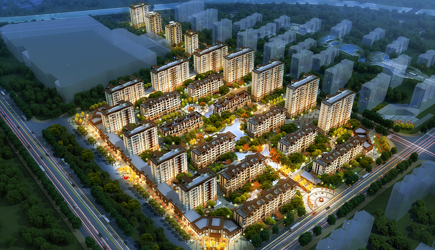 通過對基地場地價值的分析,綜合考慮容積率、建筑密度及航空限高等問題,以小高層住宅、花園洋房、疊拼別墅結合考慮規(guī)劃布局。景觀主要應以內(nèi)部打造為主。建筑布局外高內(nèi)低,將多層產(chǎn)品放在中間較好的位置,同時形成建筑高度向中心景觀帶疊落的空間感覺,最大化利用中心景觀帶。
