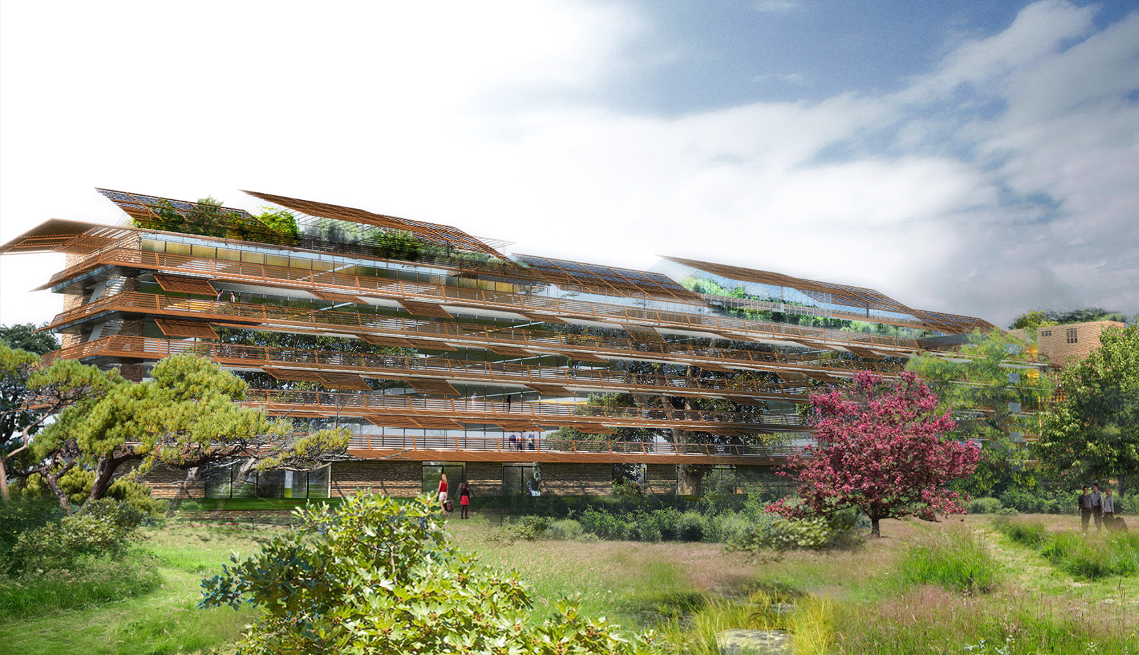 我們將建筑進行分組、散落布置,以多層建筑為主,高低錯落,建筑之間穿插各種不同主題的花園景觀,形成“花園中的藝術(shù)聚落”。