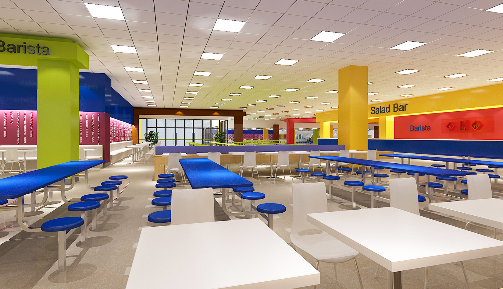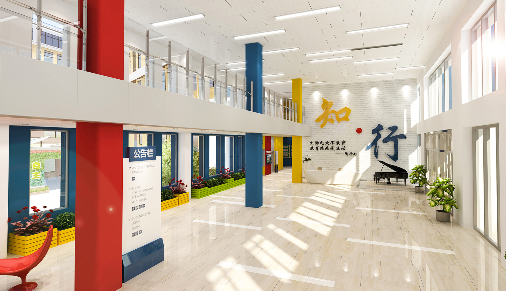 設(shè)計追求空間設(shè)計的前瞻性,深入揣摩材質(zhì)、工藝與造型之間的關(guān)系,力圖體現(xiàn)現(xiàn)代化小學(xué)空間輪廓;設(shè)計堅持以“人”為本的校訓(xùn),強調(diào)人性化設(shè)計,因此注重生態(tài)、綠色、節(jié)能、環(huán)保、文化空間功能,輔以材質(zhì)、色彩的表達,為寧夏路小學(xué)營造出了人性的、功能的、標(biāo)志化效果,為孩子創(chuàng)造-一個良好的視覺環(huán)境和心理健康發(fā)展的氛圍。