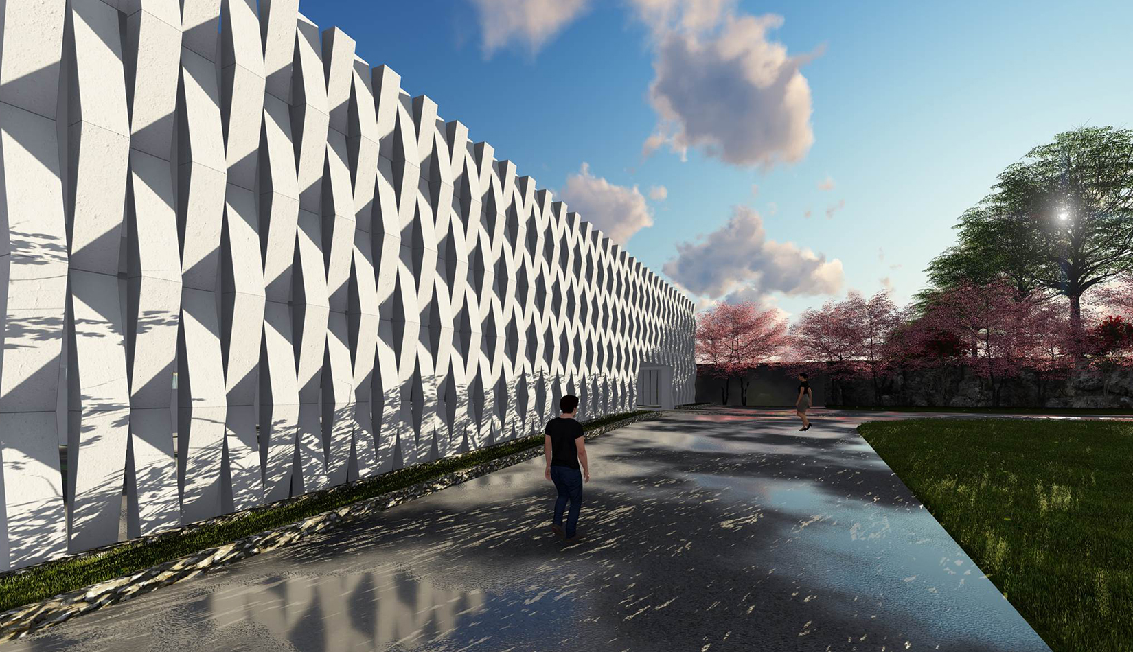 設(shè)計采用錯層停車樓形式,各停車樓板標高垂直錯開半層,形成兩部分停車空間的多層停車樓,因而簡化了坡道的結(jié)構(gòu),能夠有效地節(jié)省建筑空間。