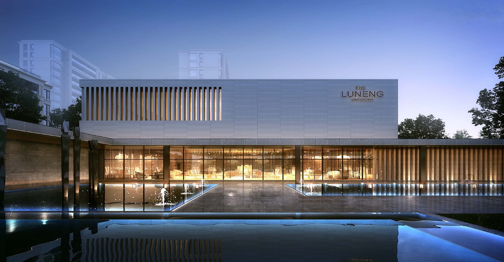 立面主體采用淺黃色真石漆,色調(diào)明快,不失品質(zhì)感。局部配合深咖啡色涂料,虛實對比強烈。高品質(zhì)玱璃欄板強調(diào)建筑的現(xiàn)代感,更具有公建化風(fēng)格?;捎妹S色石材,凸顯建筑的穩(wěn)重大氣。
